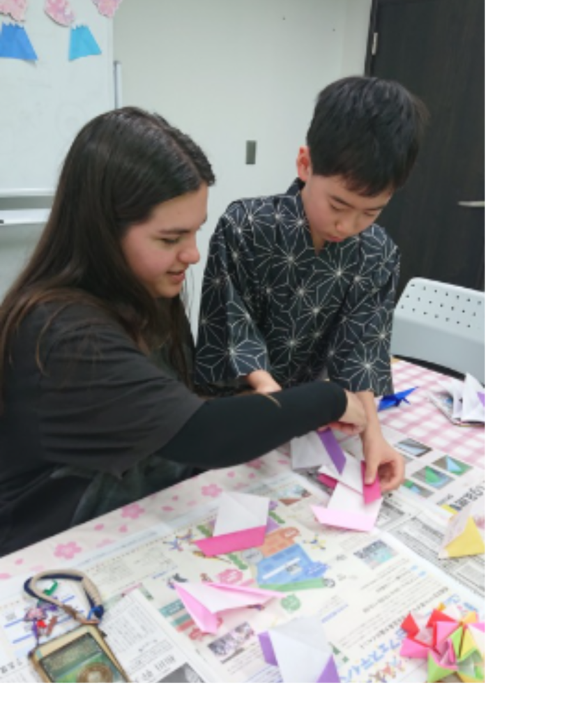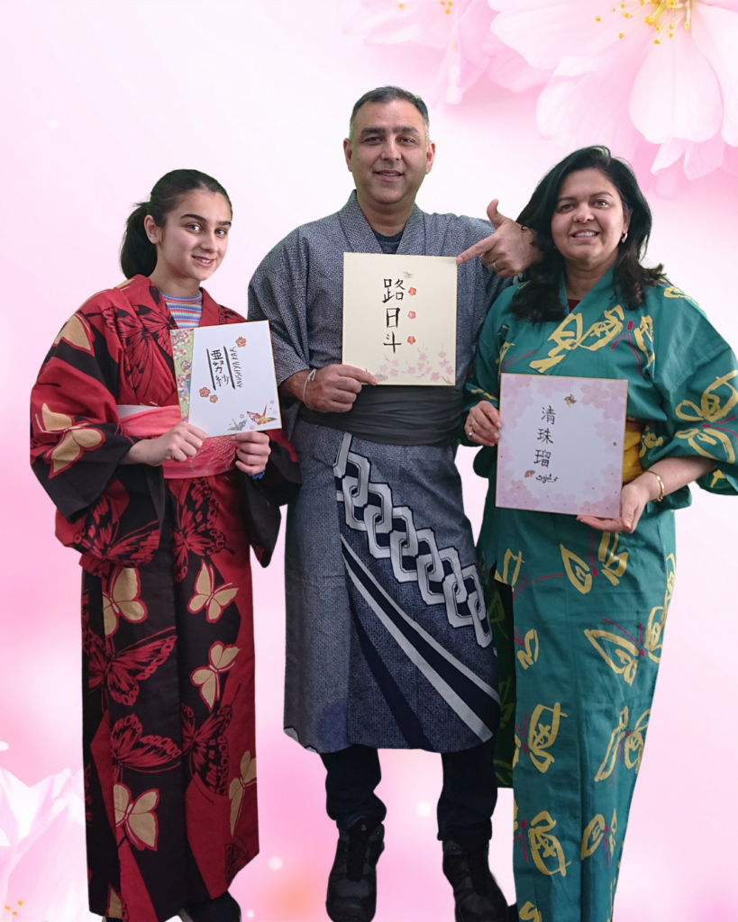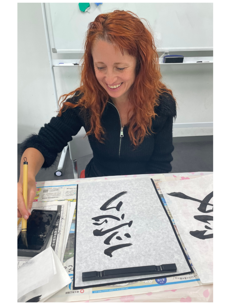 “A wonderful afternoon with Rie and her son—learning kanji, writing with ink and brush, and making origami to take home. Time flew by!”